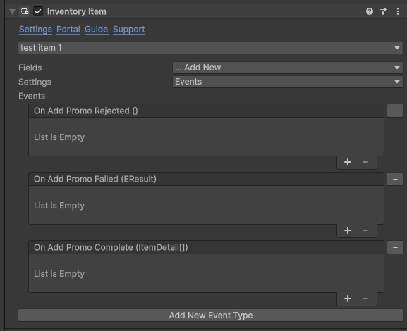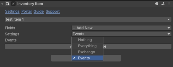 Then add a Events settings