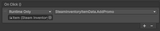 This lets you “give” users an item; in general, Steam Inventory doesn’t allow you to just give users items when you want, but promotional items can be. If you read the above documentation, you can learn more about creating items that can be given to users, just once or multiple times.
