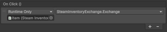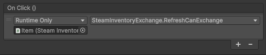 With the Exchange and Events components added, you can define the recipe for the exchange … note this must match a recipe defined in your Item Definition that is uploaded to Steamworks Developer Portal.