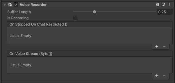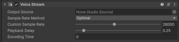 The Audio Source that will play the audio back, you can of course make this a 3D source connected to the player’s avatar to accomplish “proximity” chat
